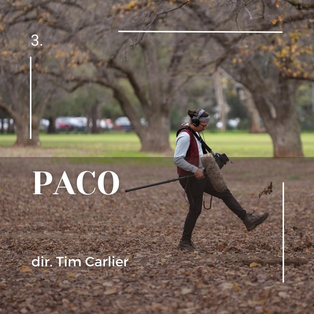 Manuel Ashman is Manny, a sound recorder on a movie set who engages in one of the greatest sins of a sound guy: he loses a microphone when an actress walks away with it still clipped to her. With a boom mic in hand and headphones strapped to his head, Manny embarks on a journey across Adelaide to find his wayward mic, and in doing so, encounters all manner of unexpected artistic endeavours: music videos, time travellers, theatre sports and improv, amongst many other delights. The basic concept of Paco hides its greatest asset: unbridled enthusiasm for creative spirits and energy around the world. This gloriously good charmfest of a film is one of the most unexpected delights of 2023, with the wholesome vision of Tim Carlier coming to life in a truly beautiful and brilliant way. Carlier acts as director, writer, producer, editor, and cinematographer, and by doing so, he has cracked open his spectacular mind and invited everyone in to witness the wonderful things he can envision. Paco closes with a procession of musicians, singers, dancers, and artists triumphantly expressing themselves as one. It’s the purest thing I’ve seen in an Australian film in a long time and has acted as a touchstone of salvation for my weathered mind throughout this difficult year. It’s no surprise that many of the films on this list hail from Adelaide given the burgeoning film community that takes place there (thanks in part to the kickstart by newcomers moviejuice), but it breaks my heart a little to know that Tim has jetted off to the UK to build a career there. If the Australian film industry encouraged, supported, and amplified films like Paco, it would be much richer and better for it.