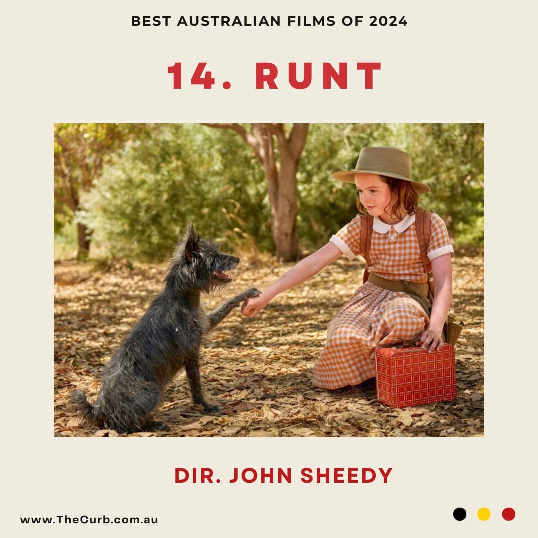 John Sheedy has a knack for creating wholesome, sweet, charming family films; you know, the sort that we adults say ‘gosh, they don’t make films like they used to.’ Runt is the kind of the film that ‘they used to make’. Craig Silvey adapts his own best-selling novel for the screen, and in the process retains the unbridled optimism of Annie Shearer (a luminous Lily LaTorre) as an amateur agility dog trainer who turns her scrappy stray pup Runt into a barnstorming success. Sheedy’s levity is buoyed by the presence of a screen-ready dog (Squid, the rescue terrier), a proper Heinz 57 pup who should inspire folks to adopt rescues. Set in the fictional West Aussie town of Upson Downs where a greedy businessman (no, not Coke) is stealing all the towns water and buying up the properties of families going bust. Earnest Annie and her inventive brother Max (Jack LaTorre) feel some of the burden their parents (light turns from Jai Courtney and Celeste Barber, two oldies who you’re certain would give great hugs) are holding, and both aim to lighten the load. Films can make things easier in life, and Runt certainly has the tools to lighten the loads of younger audiences who might be feeling the crunch of the cost-of-living crisis and feel like they need to solve the problem. Rest easy kids, it is a burden, but not yours to tackle right now.[i]