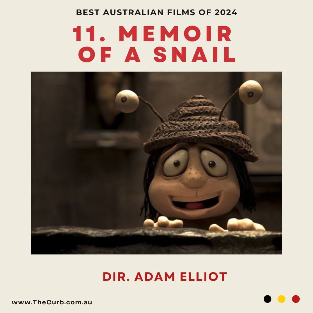 11. Memoir of a Snail Director: Adam Elliot; Cast: Sarah Snook, Kodi Smith-McPhee, Jacki Weaver, Dominique Pinon; Producers: Adam Elliot, Liz Kearney; Writer: Adam Elliot