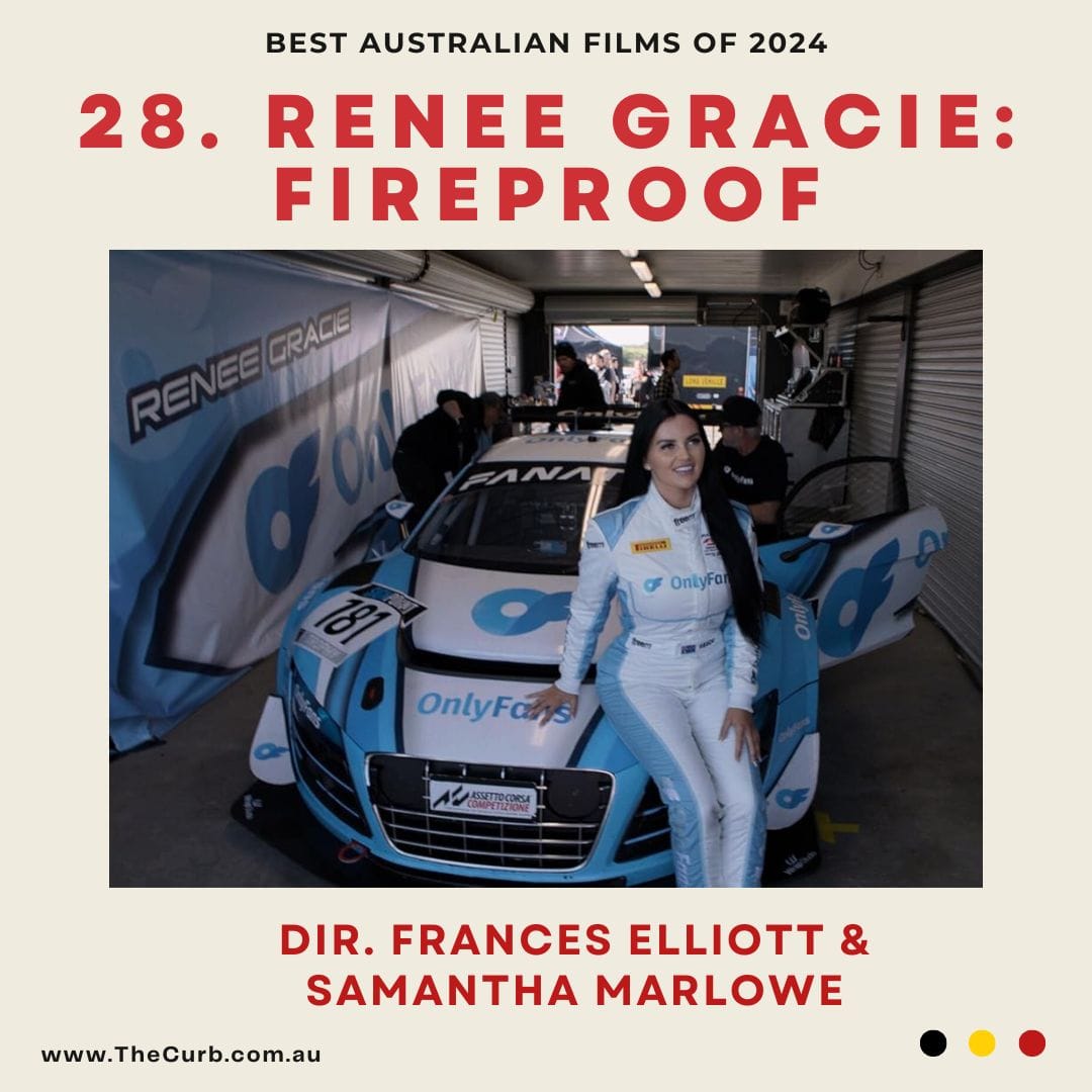 At the core of Fireproof is a deep, dark examination of the dominance of the patriarchy in Australia, driven by crotch grabbing boofheads high on the fumes of petrol and the giddy high of shouting at the nearest woman. That hyper masculinity is undercut brilliantly by Renee Gracie - a self-confessed revhead who just wants to race in supercars, and maybe one day dominate Bathurst. Instead, she faces a faceless stonewalling organisation so eagerly archaic that you can smell the filthy stench of cigarettes and bush chooks from their budget blokes clubs just from their outward rejection of supplying any footage for this fascinating doc alone. I'm being glib about the sport of race car driving, but that's one thing that Fireproof is not. Instead, Frances Elliott and Samantha Marlowe show utmost respect for the sport, ensuring that the thrill of shooting round a track in a loud car is tangible, and in turn, why Gracie would push so hard to be part of it; hard enough that her self made success on OnlyFans leads to a mighty satisfying retribution and dominance against the same organisation that rejected her to begin with. Satisfying stuff.
