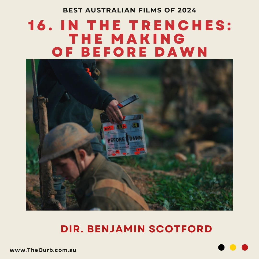 Benjamin Scotford is fascinated by how films are made. With his debut feature documentary In the Trenches: The Making of Before Dawn, he takes audiences behind the scenes of the biggest and one of the toughest independent film shoots in modern Australian history: Jordan Prince-Wright’s WW1 epic shot in Esperance. Granted access to all areas, Scotford is gifted some honest and earnest interviews with cast and crew, culminating in a captivating documentary that details the difficulty of making an independent film on a limited budget. Keen eyed readers will recall I was rough on Before Dawn, and my opinion of the film hasn’t changed much after viewing In the Trenches, but I was left impressed with the level-headed nature of Scotford’s editing as he navigates some of the trickier, fractious sections of the shoot. Unlike my harsh take on the film, Scotford isn’t seeking to tear anyone down with his documentary, instead he approaches it with a curiosity and level of admiration for the strength, will, and earnest nature that Jordan and his cast and crew pull together to make the impossible possible. Behind the scenes documentaries are a rarity in Australian film, so here’s hoping that Scotford is able to continue with his all-access filmmaking approach, and others follow suit too.