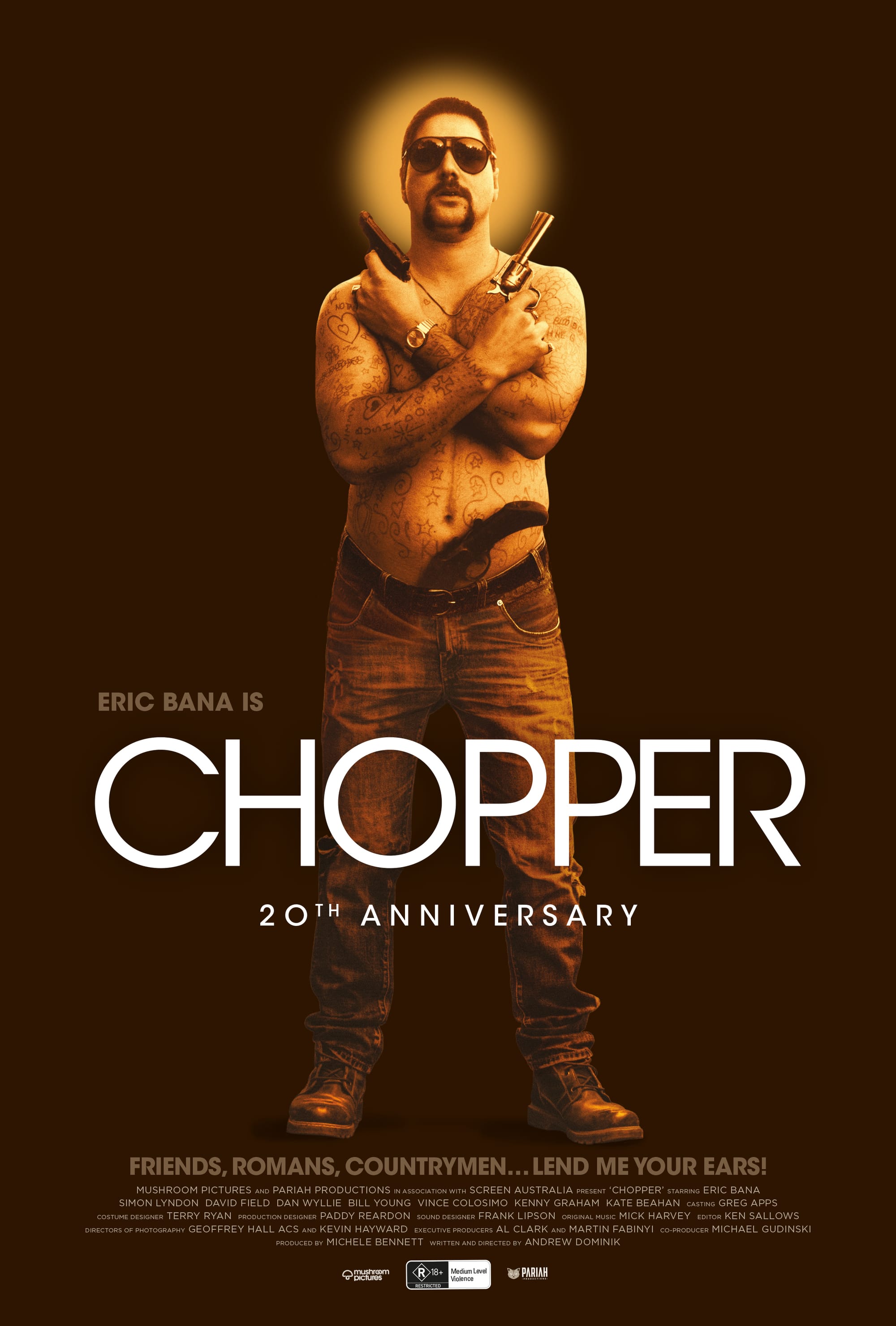 Produced by Pariah’s Michele Bennett with Michael Gudinski’s Mushroom Pictures, Chopper is a bona fide Australian classic and a one-of-a-kind cinema experience. And it’s the film that turned Eric Bana into an international superstar.